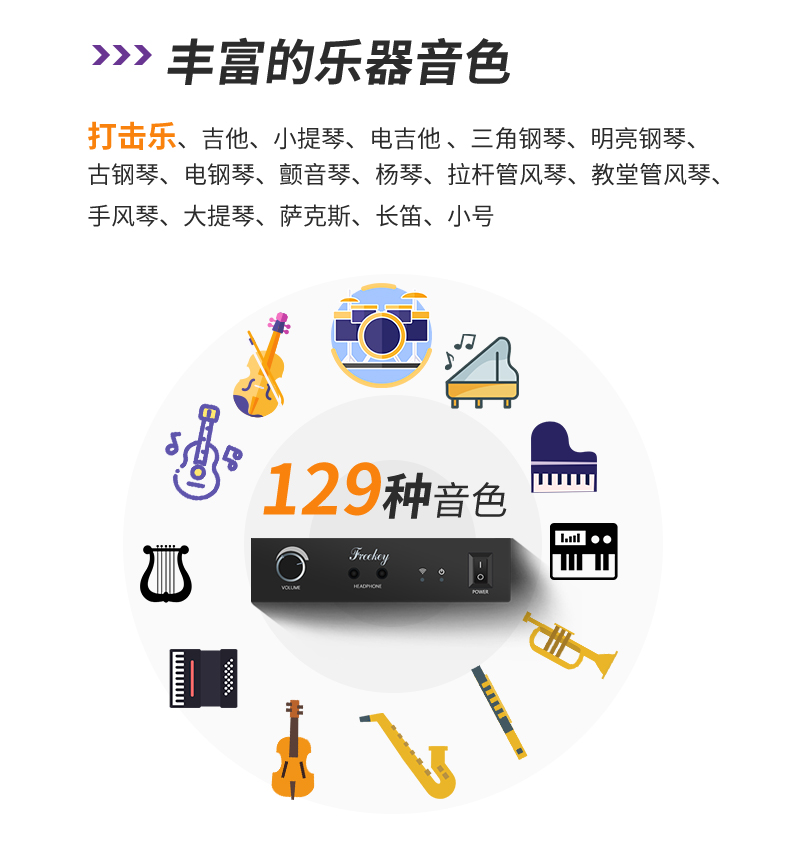最大音色:128种音色、打击乐